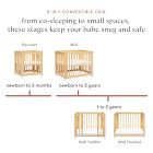 - Every conversion kit, hardware and pad is included, plus a 1" bassinet and custom 2" midi pad; Double-size crib mattress is sold separately.