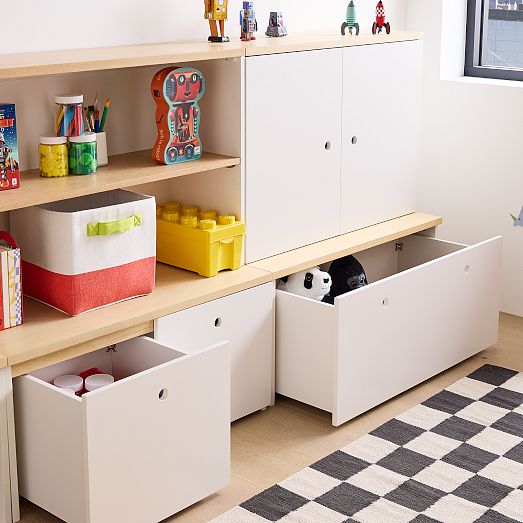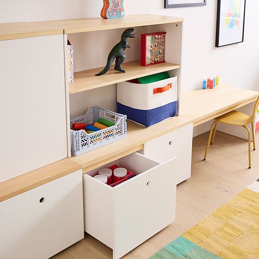 Ziggy Modular Wall System Wide Rolling with 1 Large Bin/Drawer, Natural/White
