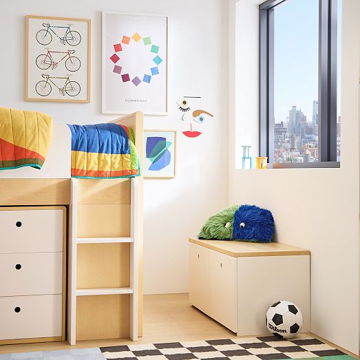Ziggy Modular Wall System with 2 Small Bins/Drawers, Natural/White