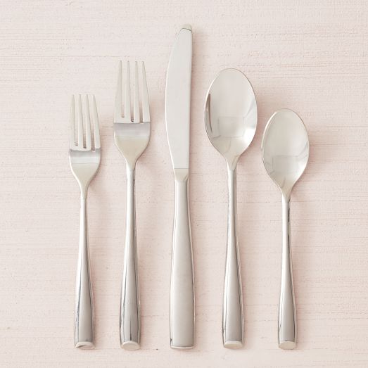 - Set of 5 includes one of each: Salad Fork, Dinner Fork, Table Knife, Soup Spoon and Teaspoon.
