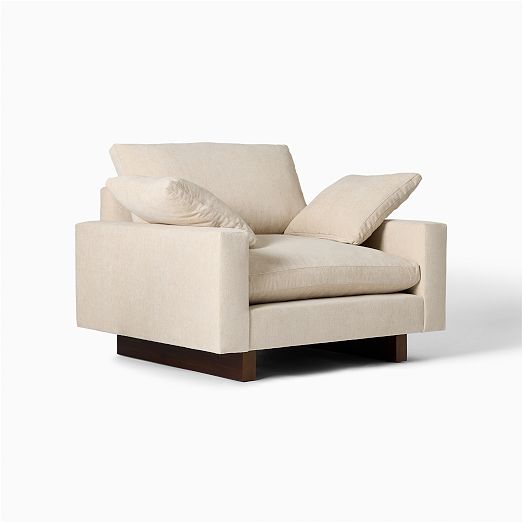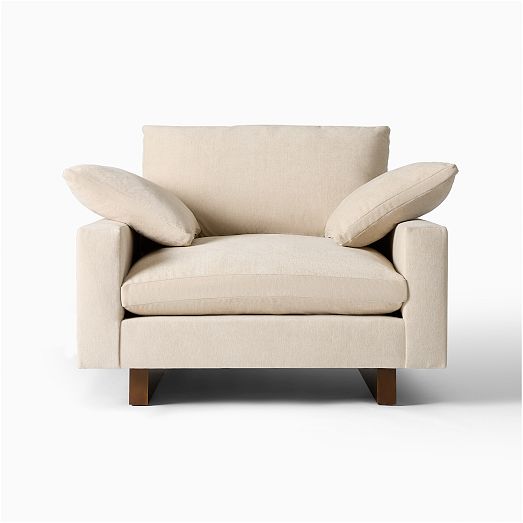 - Pillowy-soft cushions top the spacious body.