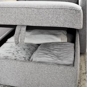 - Chaise lifts up via gas-lift mechanism to reveal storage space.