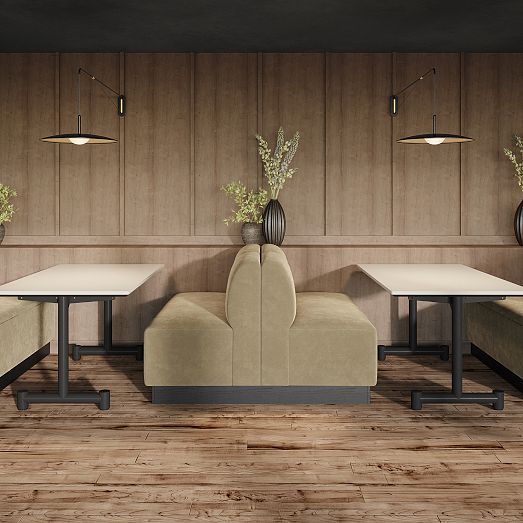 - Banquette component pieces connect together and can be arranged in your desired configuration with the included legs/hardware.