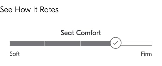 - Seat firmness: Medium. On a scale from 1 to 5 (5 being firmest), we rate it a 4.