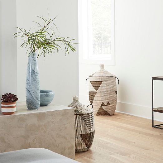 Made to mimic the unique whorls and swirls of marble but crafted of mouth-blown glass, these vases bring the best of both worlds. These handcrafted pieces make a where-did-you-get-that statement displayed solo or with a bouquet.