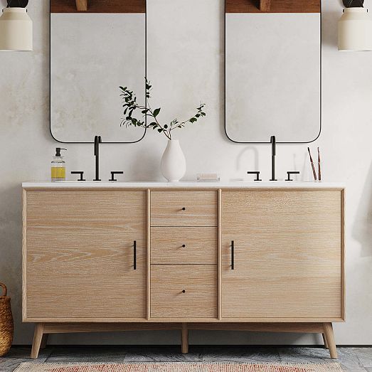 - Thin plywood panel back for easy cutting and plumbing installation.