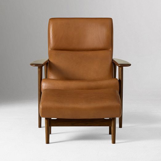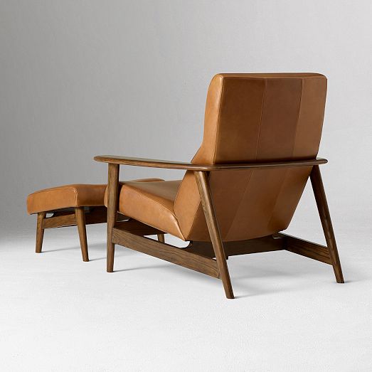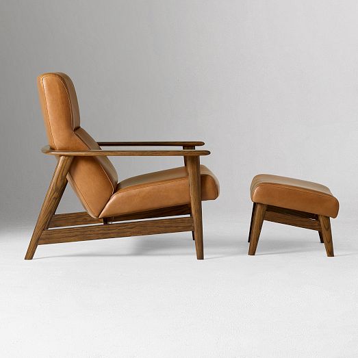 • Set includes: 1 Mid-Century Show Wood High-Back Leather Chair and 1 Mid-Century Show Wood Leather Ottoman.