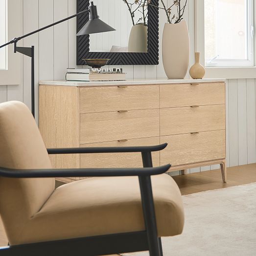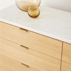 - Washed Oak: Solid and engineered wood frame and legs, oak veneer over engineered wood drawer fronts.