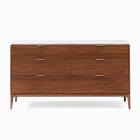 - Cool Walnut: Solid and engineered wood frame and legs, walnut veneer over engineered wood drawer fronts.