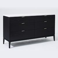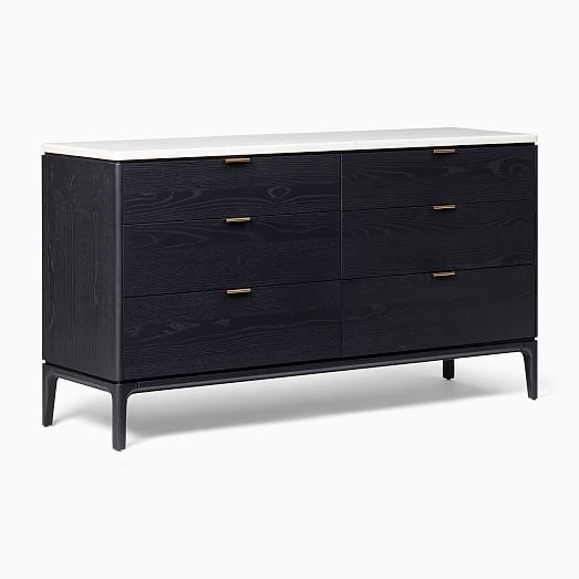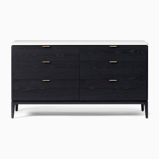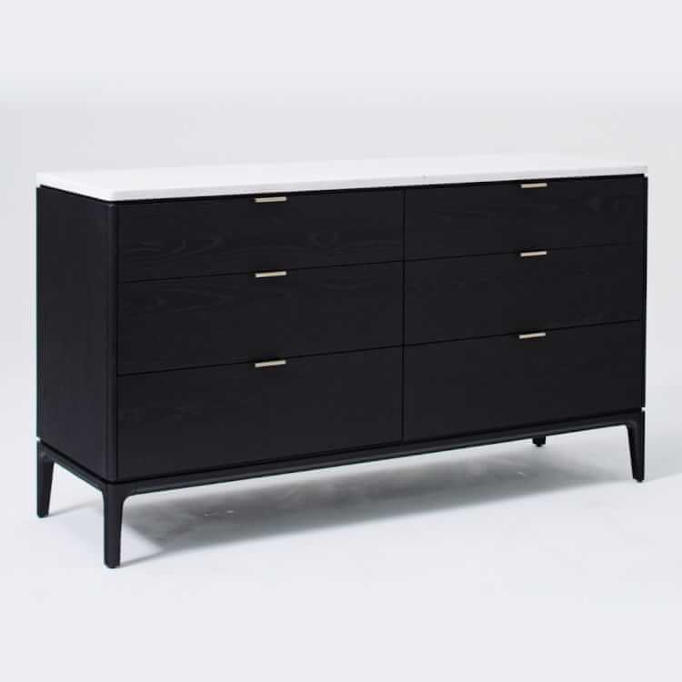 - Black: Solid and engineered wood frame and legs, ash veneer over engineered wood drawer fronts.