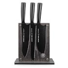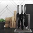 Set of 7 includes: 8.5" Bread Knife, 8" Chef Knife, 7" Santoku Knife, 6" Serrated Tomato Knife, 5" Utility Knife, 4" Paring Knife and Knife Block.