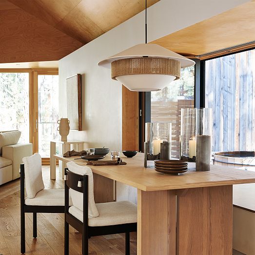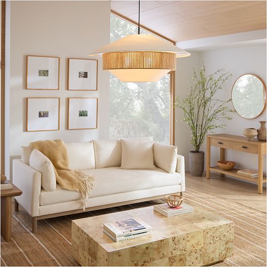 - Woven jute infuses earthy elegance into this linen shade.