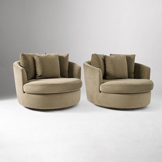 Swivel base spins 360 degrees and the seat cushion is flippable for easy re-fluffing.