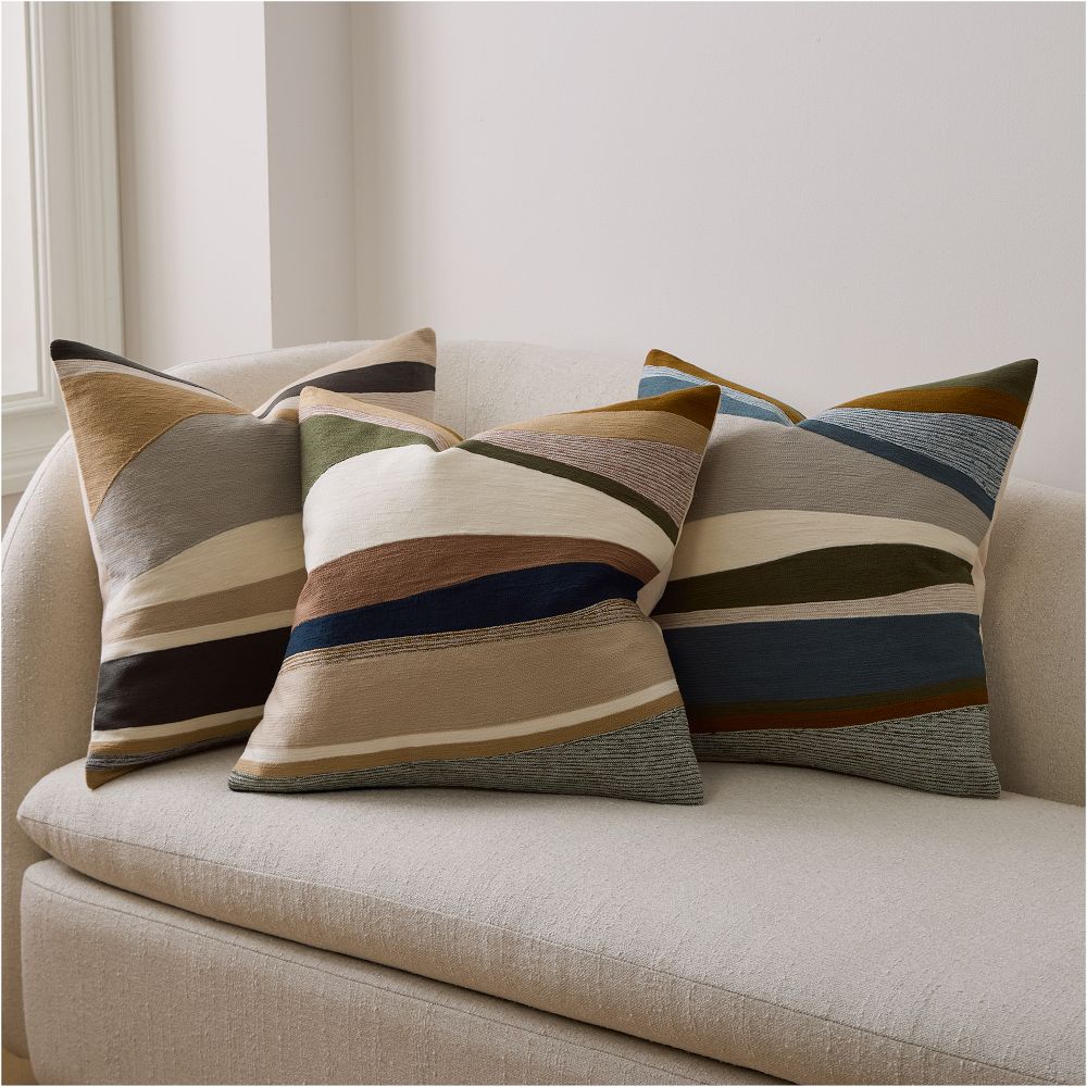 | Crewel Rising Tide Pillow Cover, 20"x20", Sable, Down Alternative Insert |