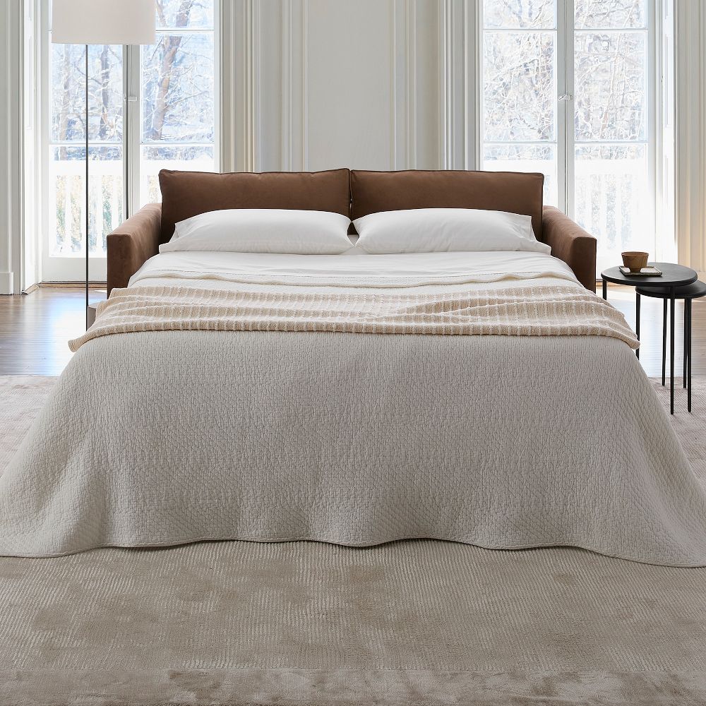 Simple yet impactful, our Harris Sleeper Sofa unfolds to reveal a supportive Queen-sized mattress that guests won't mind sleeping on. Each is assembled in the USA in your choice of colour and fabric (including our family-friendly performance fabrics), so you can create the perfect piece for your home.