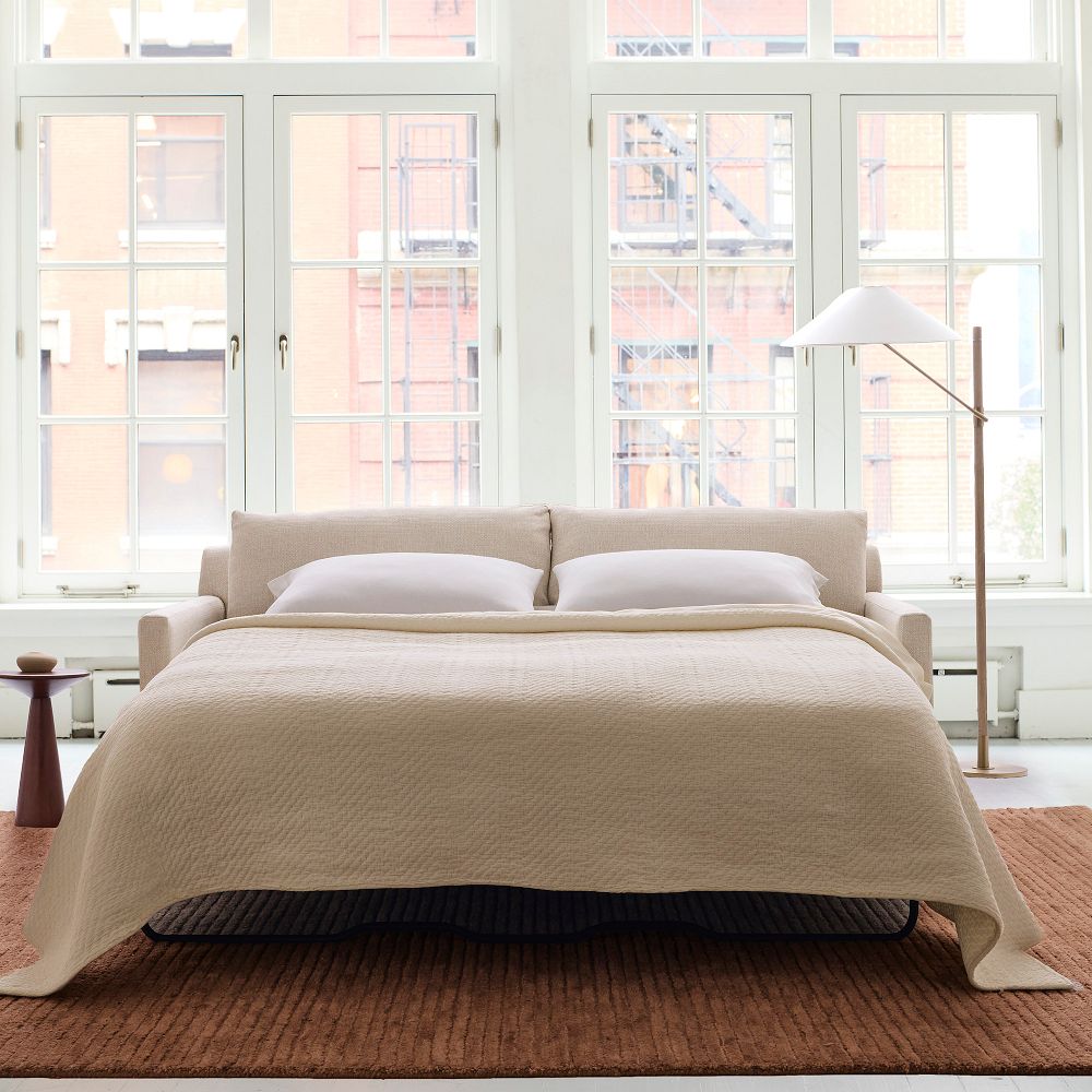 Inspired by relaxed coastal vibes, our Marin Sleeper Sofa's thick, comfy cushions are the softest seat in the house. Whether you curl up or sprawl out, its oversized frame is built for some serious lounging. The best part? It easily folds out to a Queen-sized sleeper: A no-stress solution when company calls.