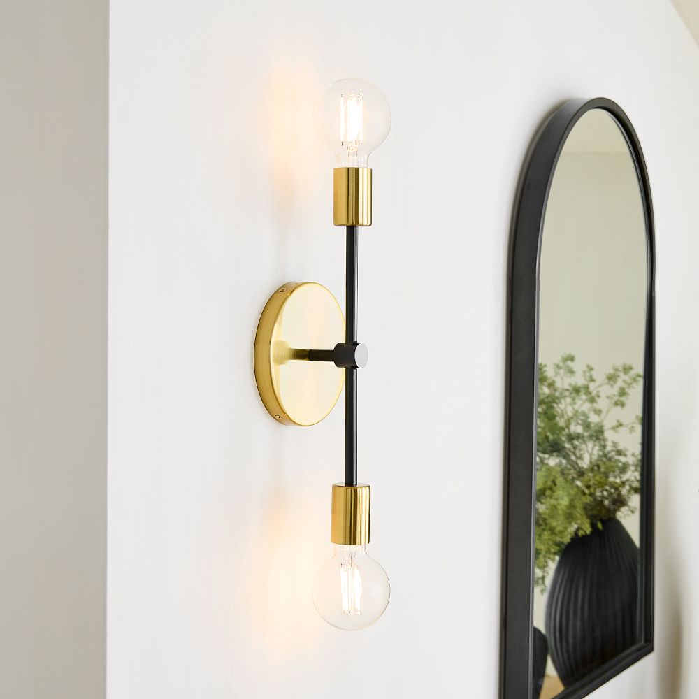 With its compact shape, our Mobile Sconce adds intrigue to an entryway or over a nightstand. Pair it with frosted, oversized bulbs for a dazzling effect.