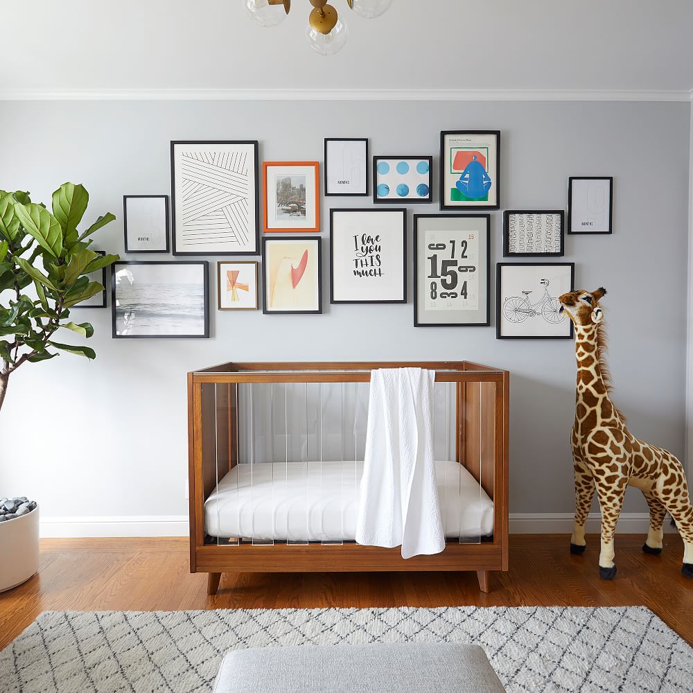 Brought to you in collaboration with Pottery Barn Kids, our GREENGUARD Gold Certified Sloan Collection combines hip acrylic with durable craftsmanship. Made of sustainably sourced wood and covered in a child-safe, paint, this versatile crib converts into a toddler bed with the matching conversion kit and mattress (each sold separately). It's crafted in a Fair Trade Certified™ facility, directly supporting the workers who make it.