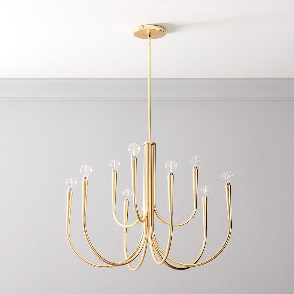 Elegant and dramatic, our Swoop Arm Chandelier is our modern interpretation of a vintage chandelier design. Its sleek curves make a striking statement above a dining table or in a living room.