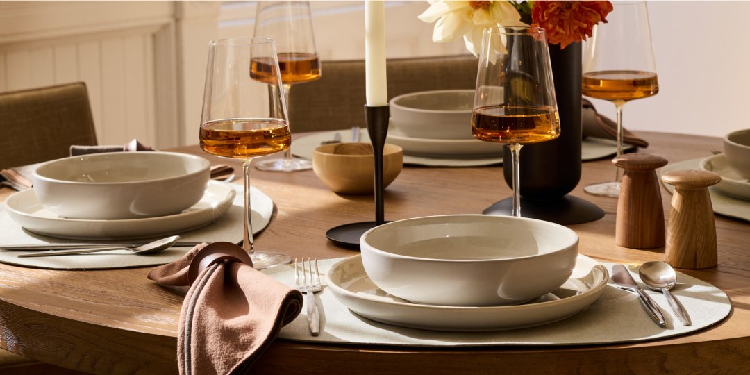 Sleek silhouettes and sunlit hues combine to create an effortless tablescape.